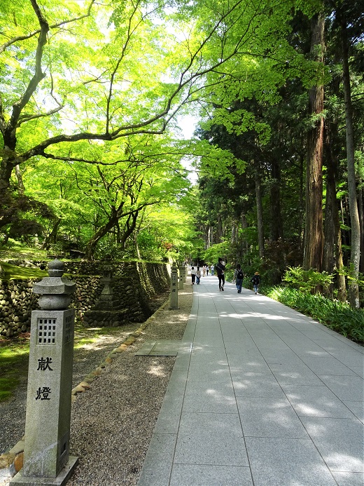新緑の参道を歩いて長い長い石段を登り、ようやく本殿に着きました。